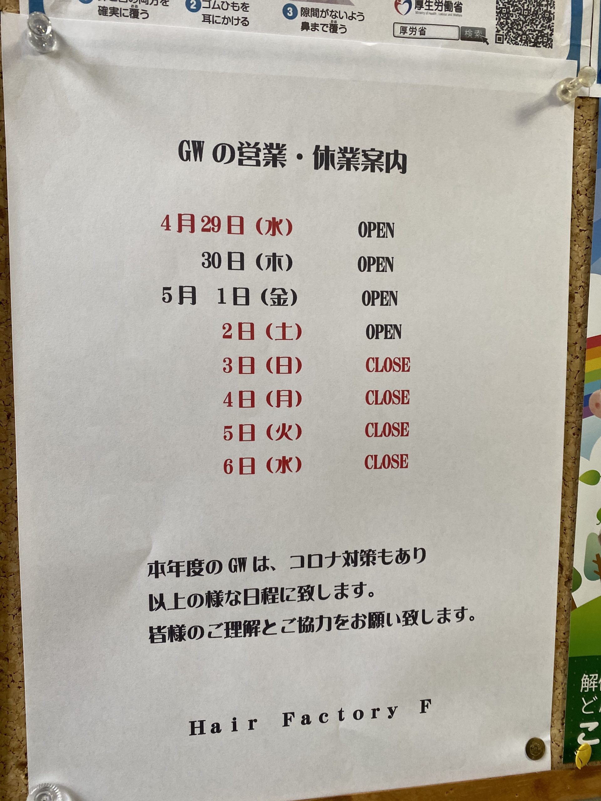 GWの営業、休業案内