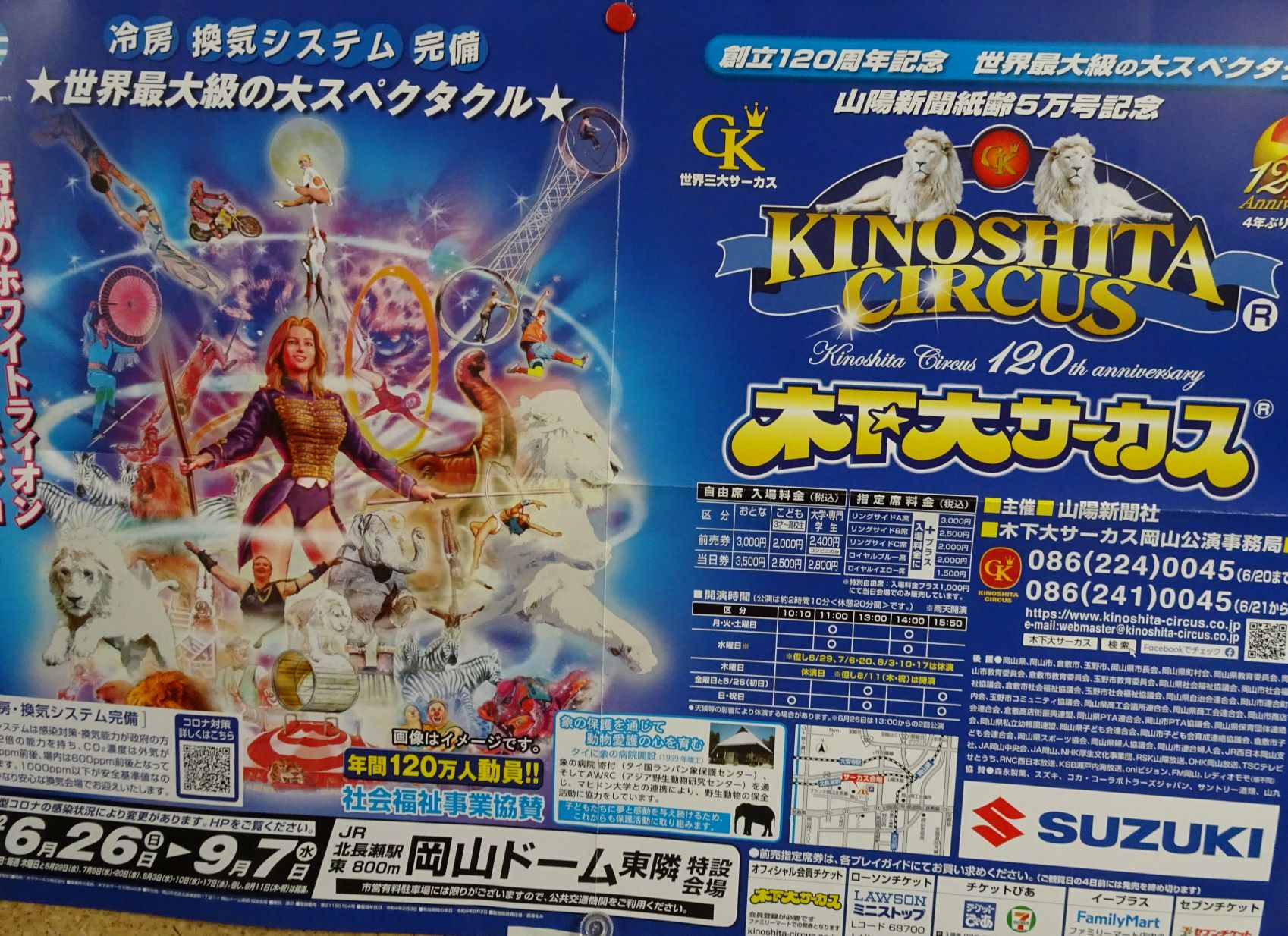 木下サーカス ニュース 2022.06.14 今年は、6月26日~9月7日までJR北長瀬東側特設会場にて開催されます、 当店に割引券がありますので、ご希望の方は、お申し出ください。 数に限りがありますので、無くなり次第終了します。 よろしくお願いいたします。